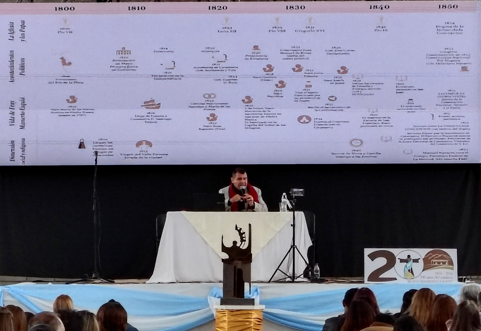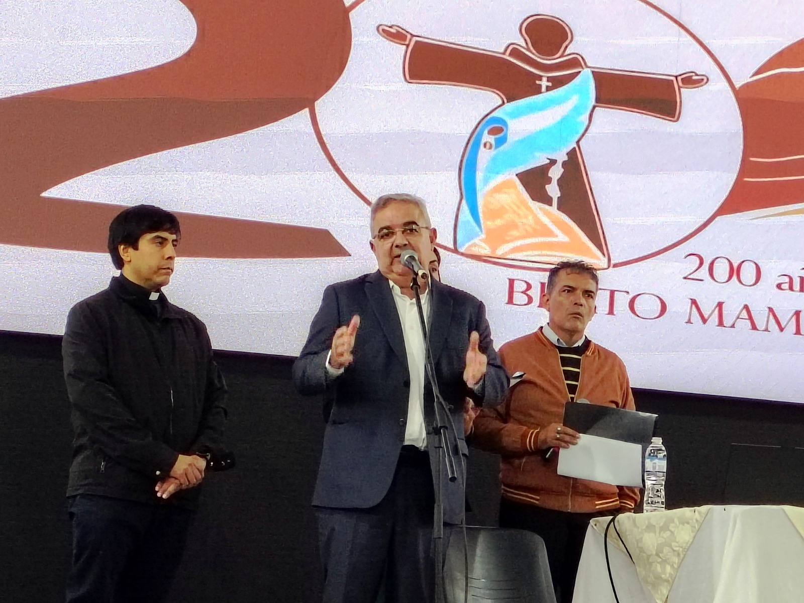 Seguidamente, se dio paso a las disertaciones, que arrancaron con el Prof. Mario Vera, quien abordó el eje histórico; luego brindó su conferencia Fray Pablo Reartes, sacerdote franciscano catamarqueño residente actualmente en Santa Fe, quien se centró en el eje ético-religioso. Ambos con estudiosos y apasionados por la figura y el legado de nuestro querido Beato Mamerto Esquiú.